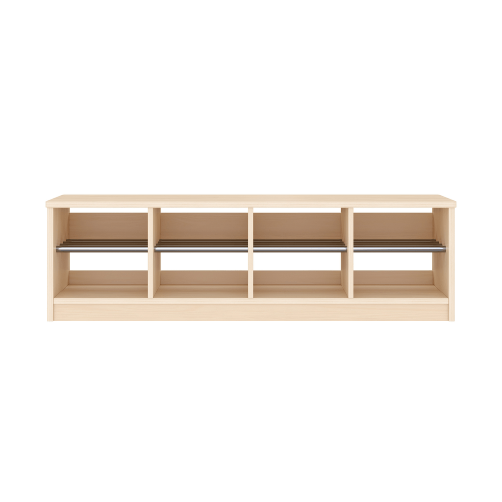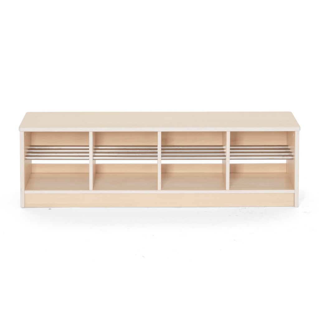 Le banc est également un atout pratique pour les professionnels de l'enfance. Grâce à sa structure basse et stable, il facilite la gestion des flux lors des arrivées et départs. Son encombrement réduit (seulement 33 cm de profondeur) le rend compatible avec les petits couloirs ou entrées étroites, optimisant ainsi l’aménagement de l’espace.