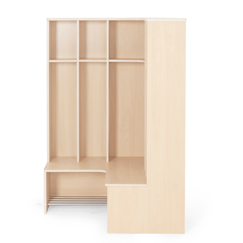 Pensé pour répondre aux besoins des crèches, haltes-garderies et écoles maternelles, ce vestiaire d’angle facilite l’autonomie progressive des enfants lors des temps d’accueil et de départ. Chaque compartiment est accessible à hauteur d’enfant, encourageant les compétences en motricité fine lors de l’accrochage ou du retrait des vêtements.