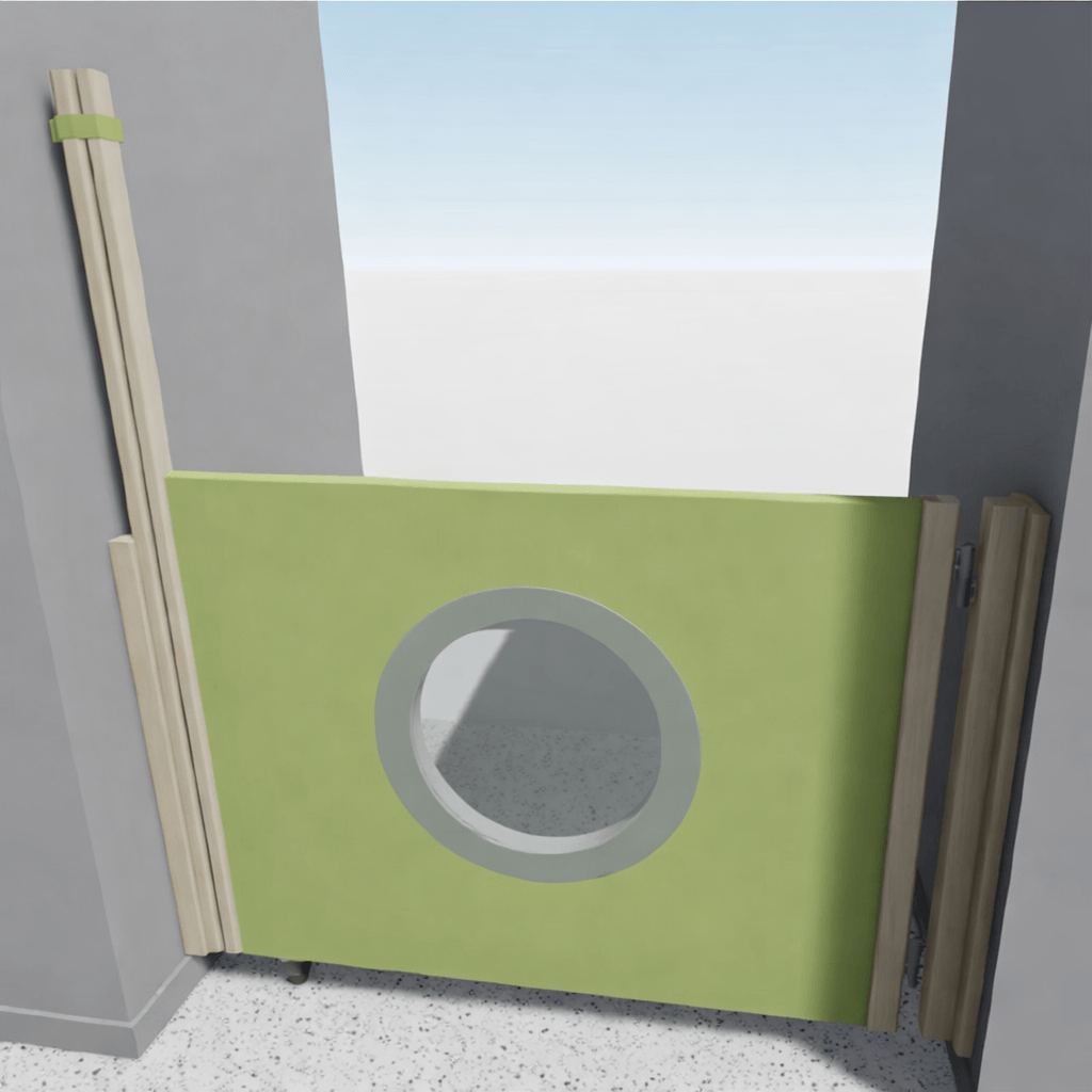 Portillon en bois sur roulette pour collectivité ou espace d'accueil de jeune enfant,