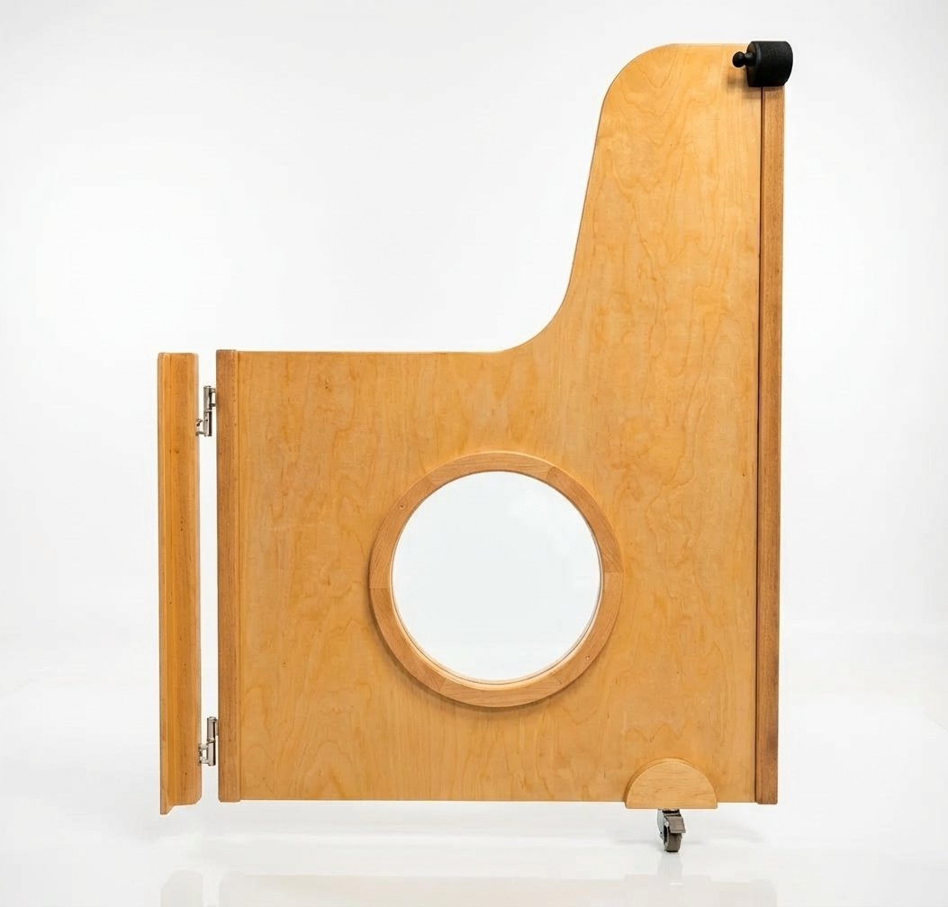 Ce portillon en bois sur mesure, équipé d’un oculus et d’un verrou magnétique, est spécialement conçu pour répondre aux exigences des environnements d’accueil de la petite enfance. Il constitue une solution fiable pour sécuriser l’accès entre deux espaces : séparation de salle de jeux, cloisonnement de couloirs, gestion des flux dans les zones d’accueil ou même délimitation d’un accès extérieur. Son design soigné s’intègre harmonieusement dans tout aménagement, tout en répondant aux contraintes pratiques du quotidien.