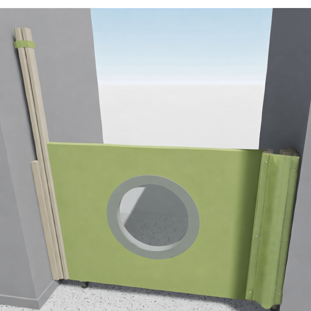 Portillon en bois sur roulette pour collectivité ou espace d'accueil de jeune enfant,