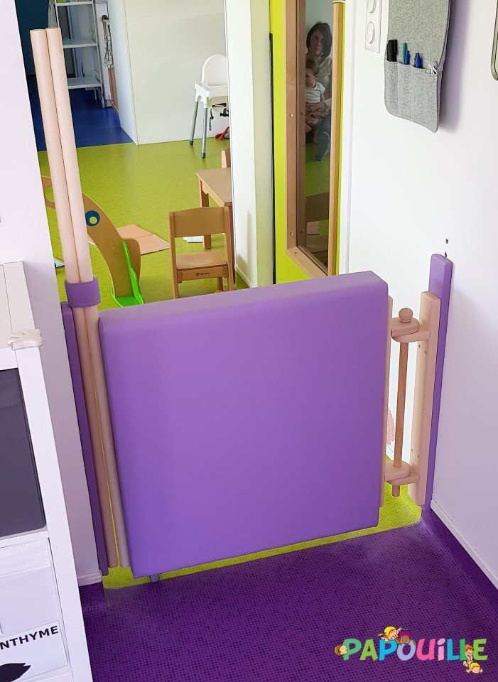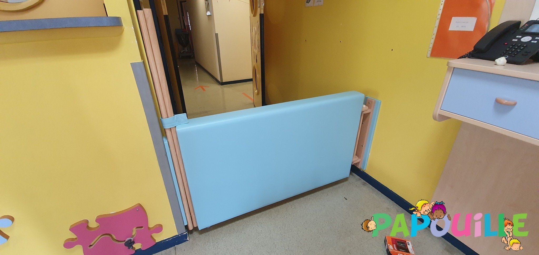 Portillon en bois sur roulette pour collectivité ou espace d'accueil de jeune enfant,