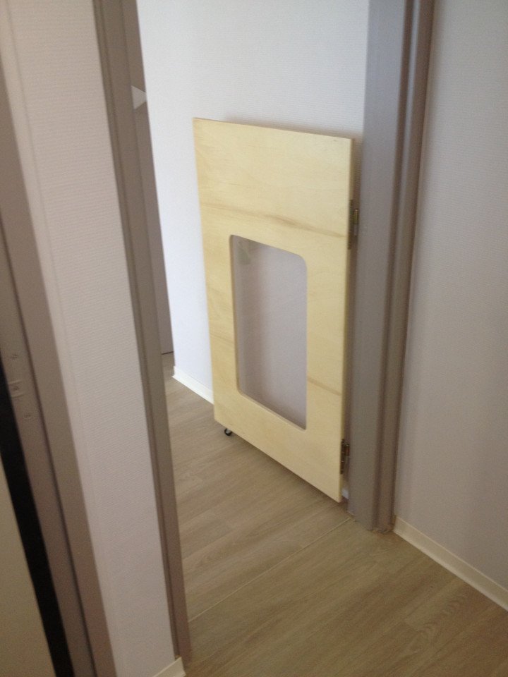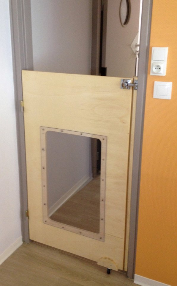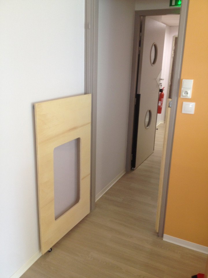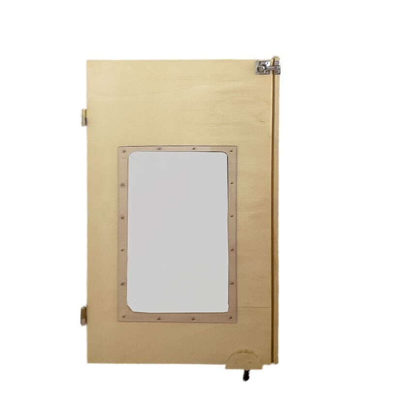 Grâce à la fenêtre en plexiglas les enfants pourront observer ou être visible si ils se cachent derrière ;)