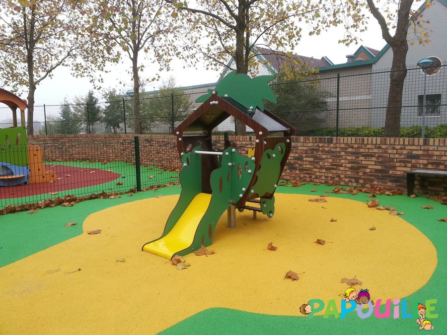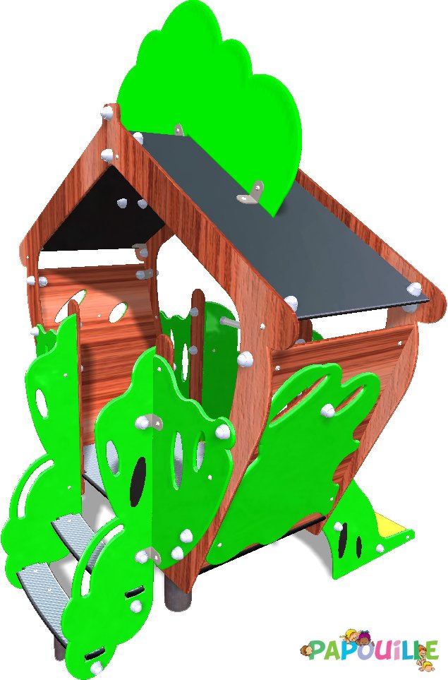 Avec cette cabane, les enfants pourront grimper, glisser ou simplement se cacher à l'intérieur de la maisonnette.