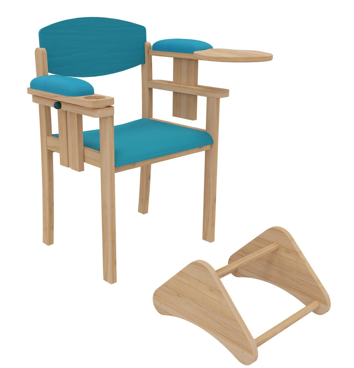 L'assise et le dossier en CTP moulé de 10 mm offrent un confort optimal tout en étant faciles à nettoyer, un atout majeur pour le quotidien des structures accueillant des enfants. Les patins plastiques sous les pieds protègent les sols des rayures, tandis que les accoudoirs en hêtre massif ajoutent une touche d'élégance et de confort supplémentaire.