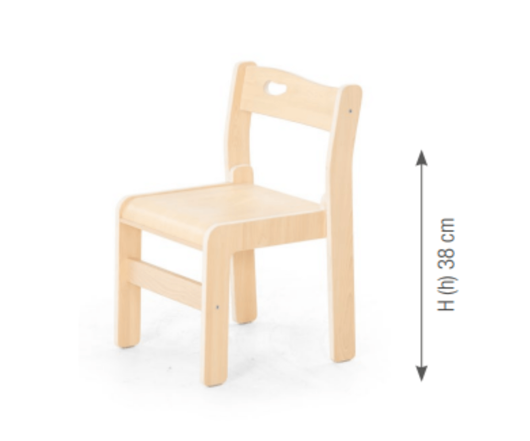 Avec une hauteur d’assise de 38 cm, cette chaise s’adapte parfaitement aux besoins des jeunes enfants et favorise une posture confortable durant les activités en classe ou en crèche.