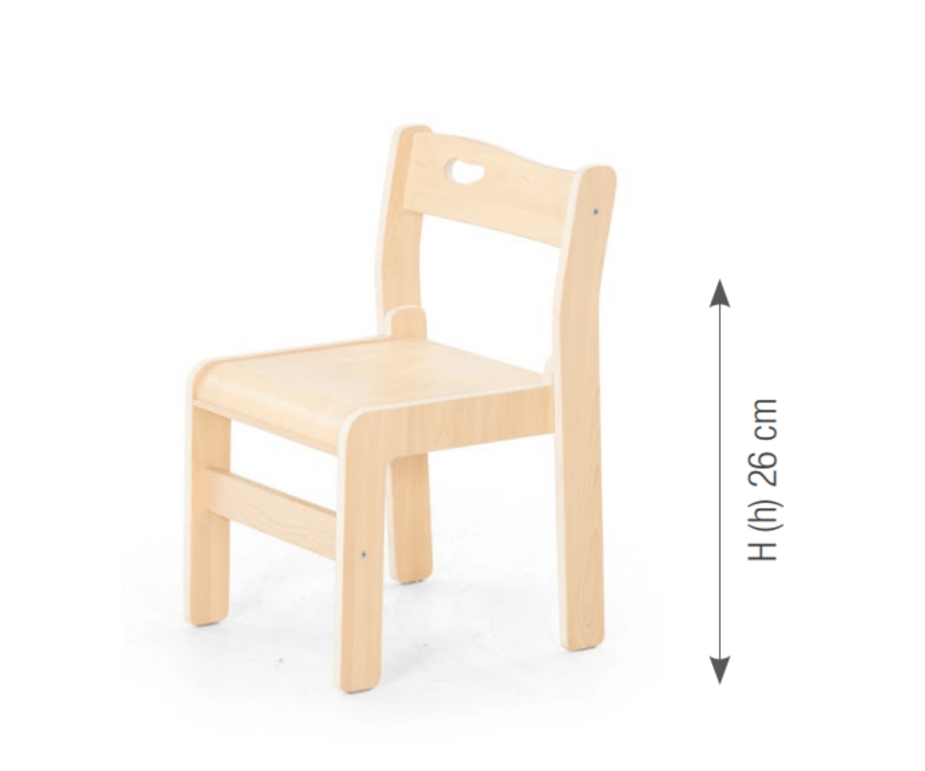 Avec une hauteur d’assise de 26 cm, cette chaise s’adapte parfaitement aux besoins des jeunes enfants et favorise une posture confortable durant les