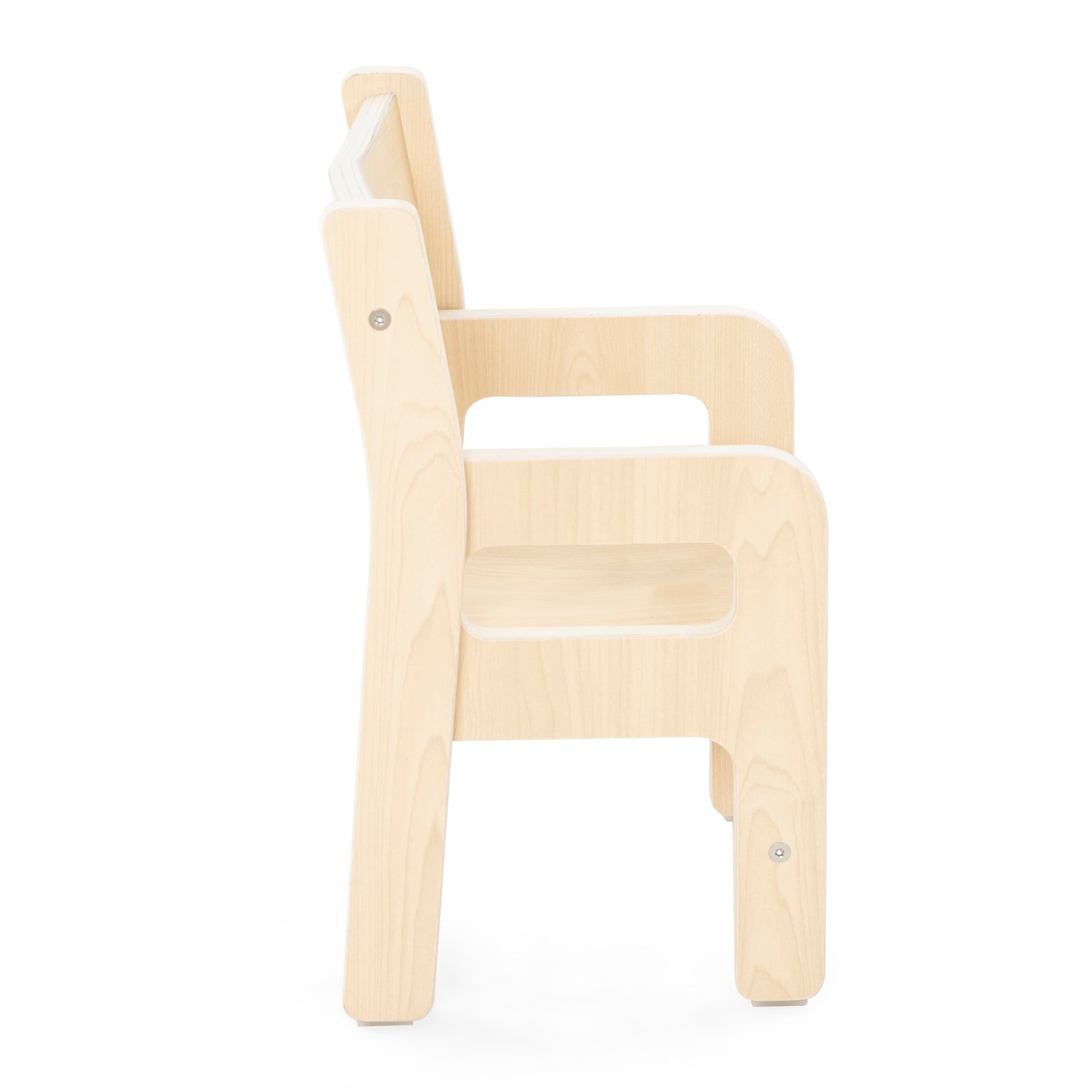Fabriquée en multiplex de peuplier de qualité supérieure, cette chaise est dotée d’un revêtement mélaminé finition érable, garantissant à la fois légèreté et robustesse. Son design bien pensé assure une grande stabilité, même en cas d’usage intensif par les tout-petits.
