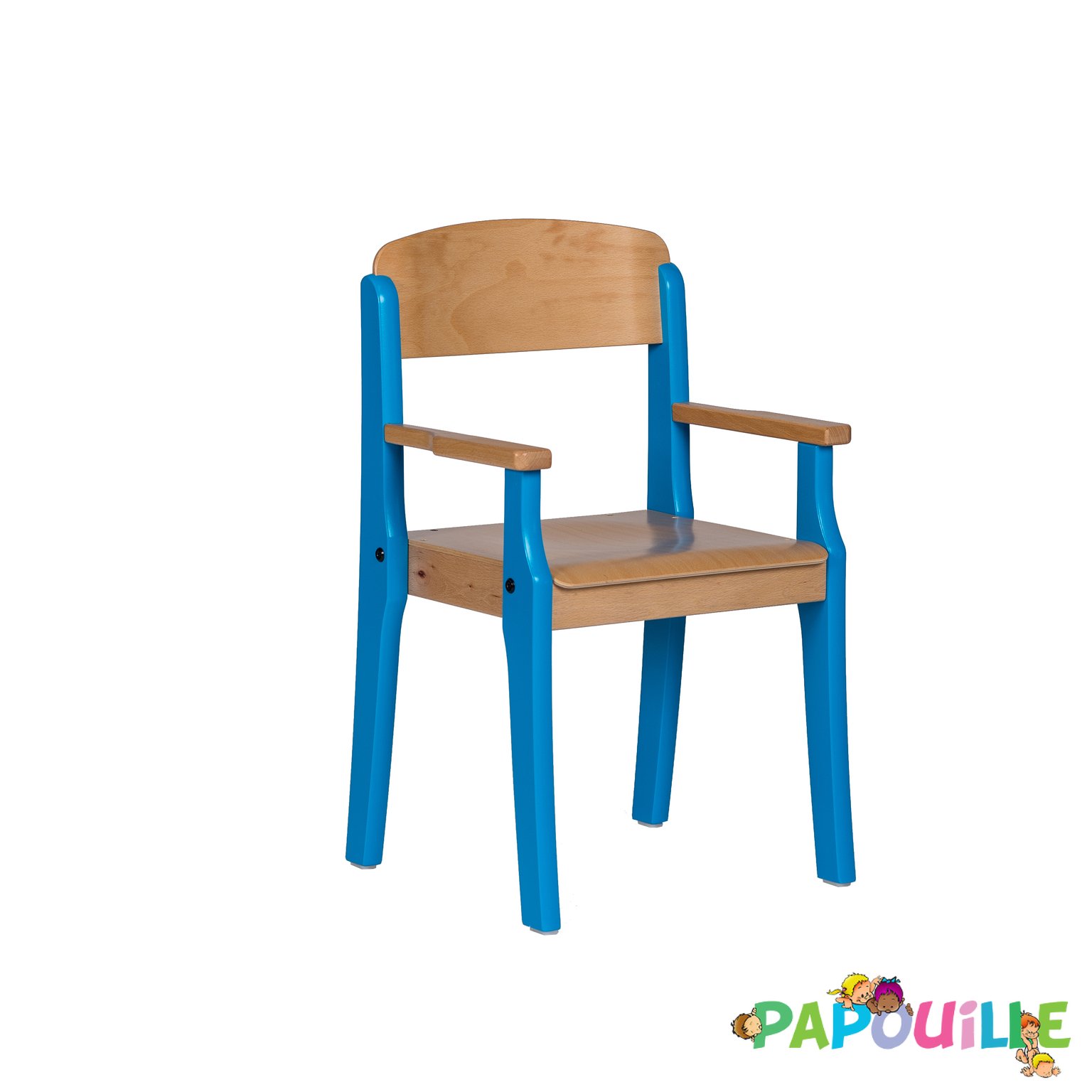 Fauteuil enfant en bois avec accoudoirs t3 h.35cm bleu