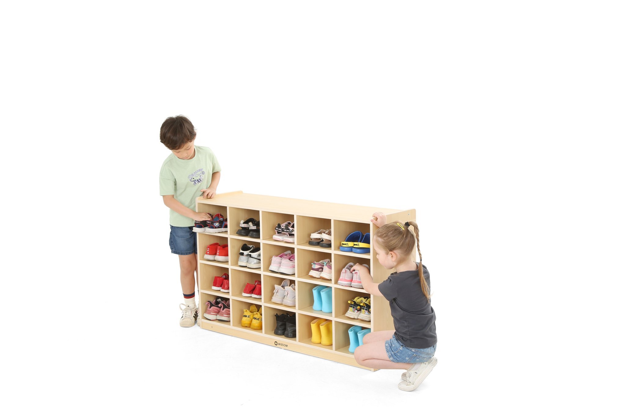 Gardez votre espace d’accueil bien organisé avec cette étagère à chaussures robuste et spacieuse, idéale pour les écoles maternelles, crèches et structures d’accueil de jeunes enfants. Conçue pour accueillir jusqu’à 20 paires de chaussures, elle permet un rangement ordonné et facilement accessible aux petits.