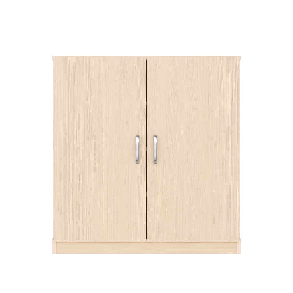 Sa conception basse (79 cm de hauteur) en fait un mobilier parfaitement adapté à la taille des tout-petits, encourageant ainsi l’accès libre aux jeux ou au matériel pédagogique dans une logique d’aménagement inspirée de la pédagogie Montessori. Les deux portes pleines permettent de dissimuler le contenu pour un environnement visuellement apaisé et ordonné, tout en sécurisant les objets stockés.