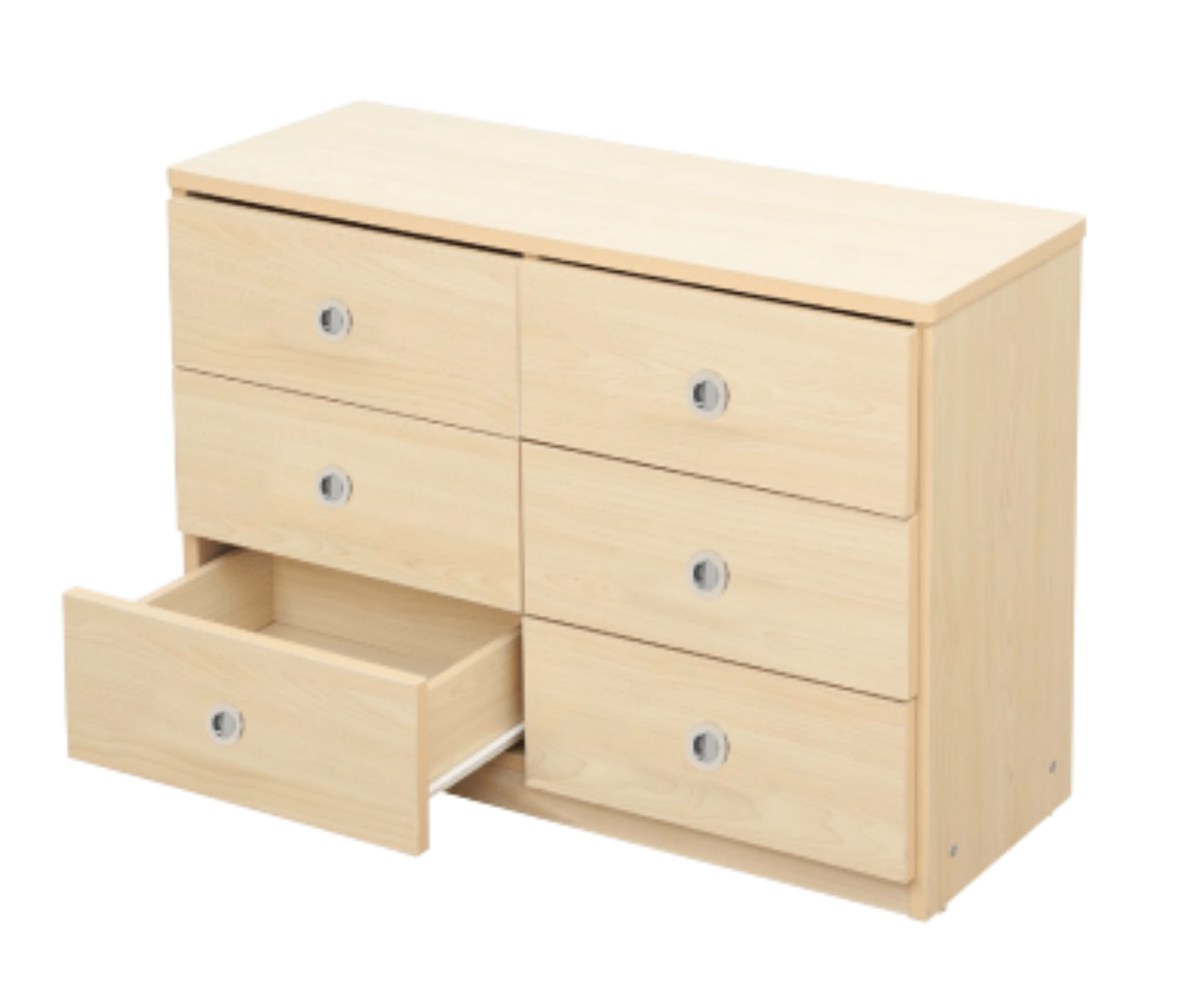 Fabriquée en bois de caoutchouc avec placage en érable mélaminé, cette commode allie durabilité et esthétisme. Son revêtement mélaminé offre une surface résistante et facile à nettoyer, idéale pour un usage quotidien en collectivité. Avec ses 6 tiroirs spacieux, elle permet de ranger vêtements, accessoires de change, jeux ou matériel pédagogique de manière organisée et facilement accessible.