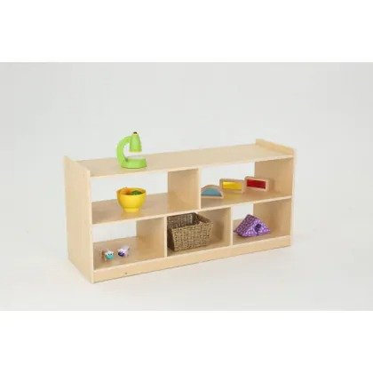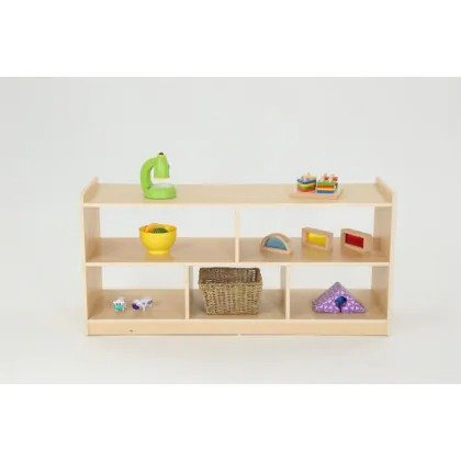 Cette étagère innovante est spécialement conçue pour être accessible des deux côtés, la rendant idéale pour une placement au centre de la salle. Cette configuration encourage l'interaction et l'exploration par les enfants sous plusieurs angles, favorisant ainsi leur développement social et cognitif dans un cadre ludique et éducatif.