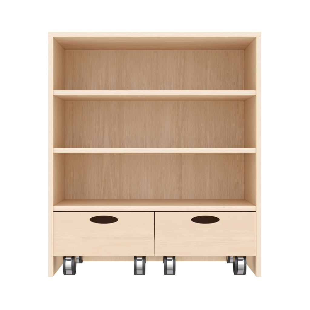 Ce meuble de rangement compact et fonctionnel a été pensé pour répondre aux besoins des structures d’accueil de la petite enfance. Avec ses 3 compartiments ouverts et 2 bacs de rangement à roulettes intégrés, le meuble Cléo offre une solution pratique et esthétique pour organiser jeux, livres ou matériel pédagogique dans les crèches, micro-crèches ou espaces d’éveil.