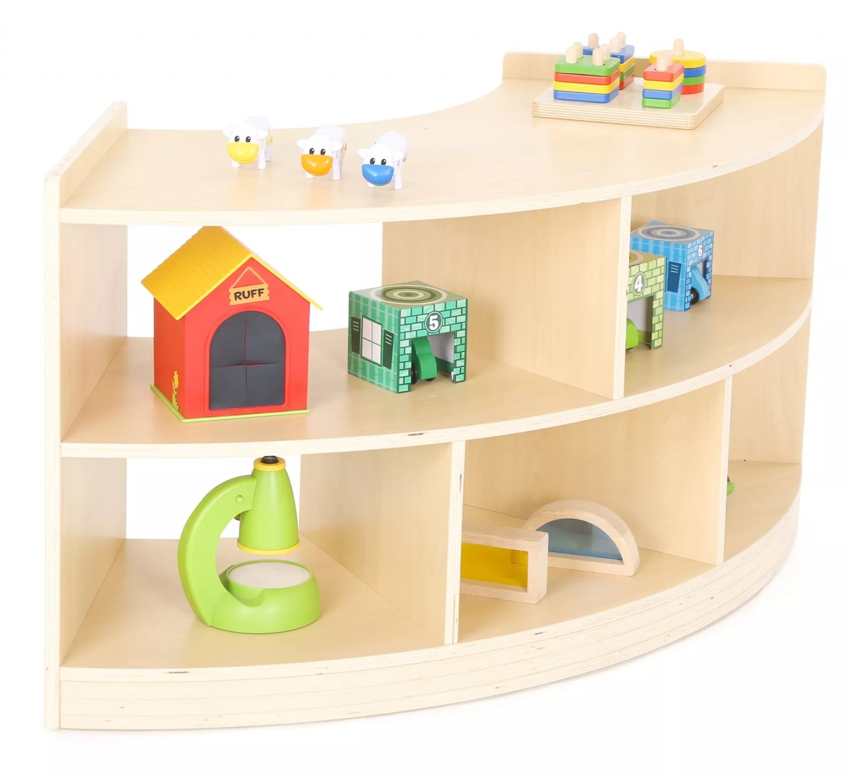 Le meuble quart de cercle représente une solution innovante et esthétique pour les crèches, les micro-crèches, les haltes-garderies, les jardins d'enfants, ainsi que pour les chambres d'enfants à domicile.