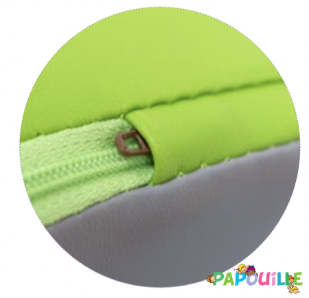 Le revêtement en liège naturel constitue un véritable atout pour les équipes éducatives. Hypoallergénique, imperméable, recyclable et garanti sans phtalates ni substances nocives, il répond aux exigences d’un usage intensif en collectivité. Les coutures en fil polyester haute résistance et le système de dissimulation de fermeture éclair limitent l’accès à la mousse, renforçant la sécurité au quotidien.