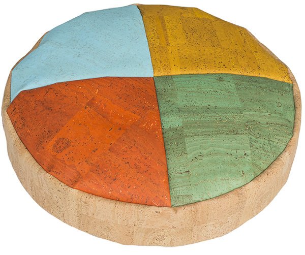 Caractéristiques techniques du coussin rond 4 couleurs en liège :