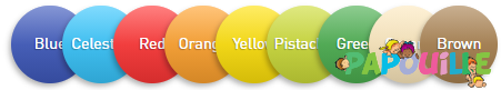 Bleu / Bleu Ciel / Rouge / Orange / Jaune / Pistache / Vert / Crème / Marron