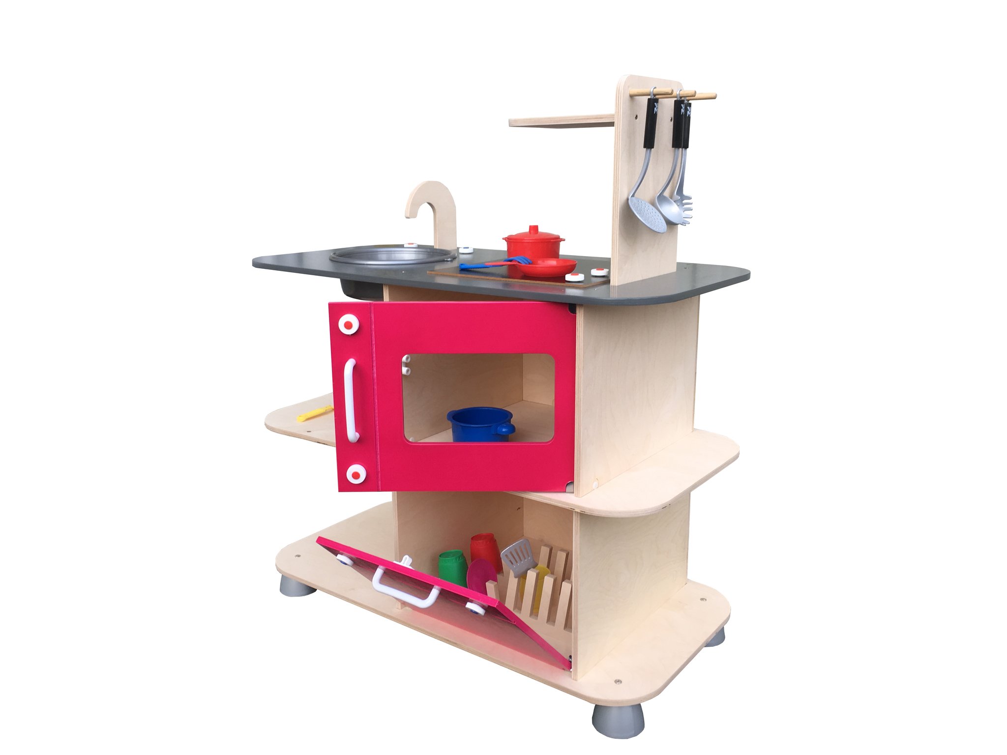 Pensée pour favoriser le jeu collaboratif, cette cuisine en îlot permet à plusieurs enfants de jouer simultanément autour d’elle. Elle est donc parfaite pour aménager un coin dînette dans une crèche, une micro-crèche ou un EAJE, où elle encouragera les jeux d’imitation, la socialisation et le développement du langage.