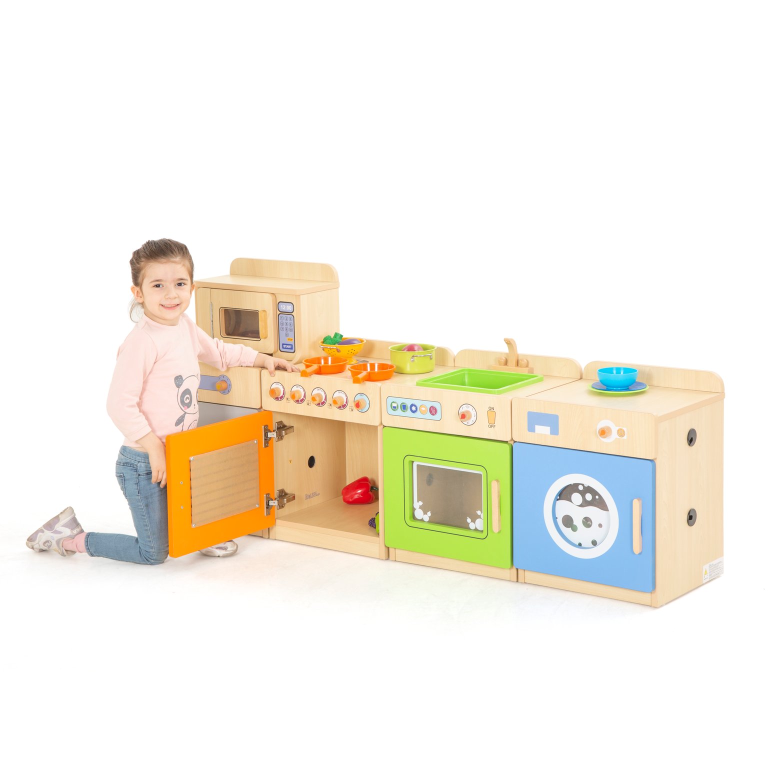 Offrez à vos enfants l'expérience ludique du jeu de rôle avec cette machine à laver jouet au design attrayant. Sa construction en panneau de particules, revêtue d'un mélaminé imitant l'érable, assure à la fois solidité et esthétique. Les charnières métalliques de haute qualité garantissent une ouverture et une fermeture sans effort, renforçant la sécurité et la durabilité du jouet. Parfaitement adaptée pour les jeux d'imitation, elle aide à développer l'imagination et les compétences sociales des enfants, tout en s'intégrant élégamment dans leur espace de jeu grâce à sa jolie couleur bleue et bois.
