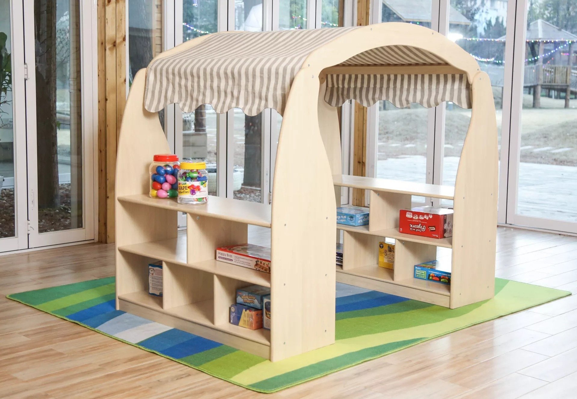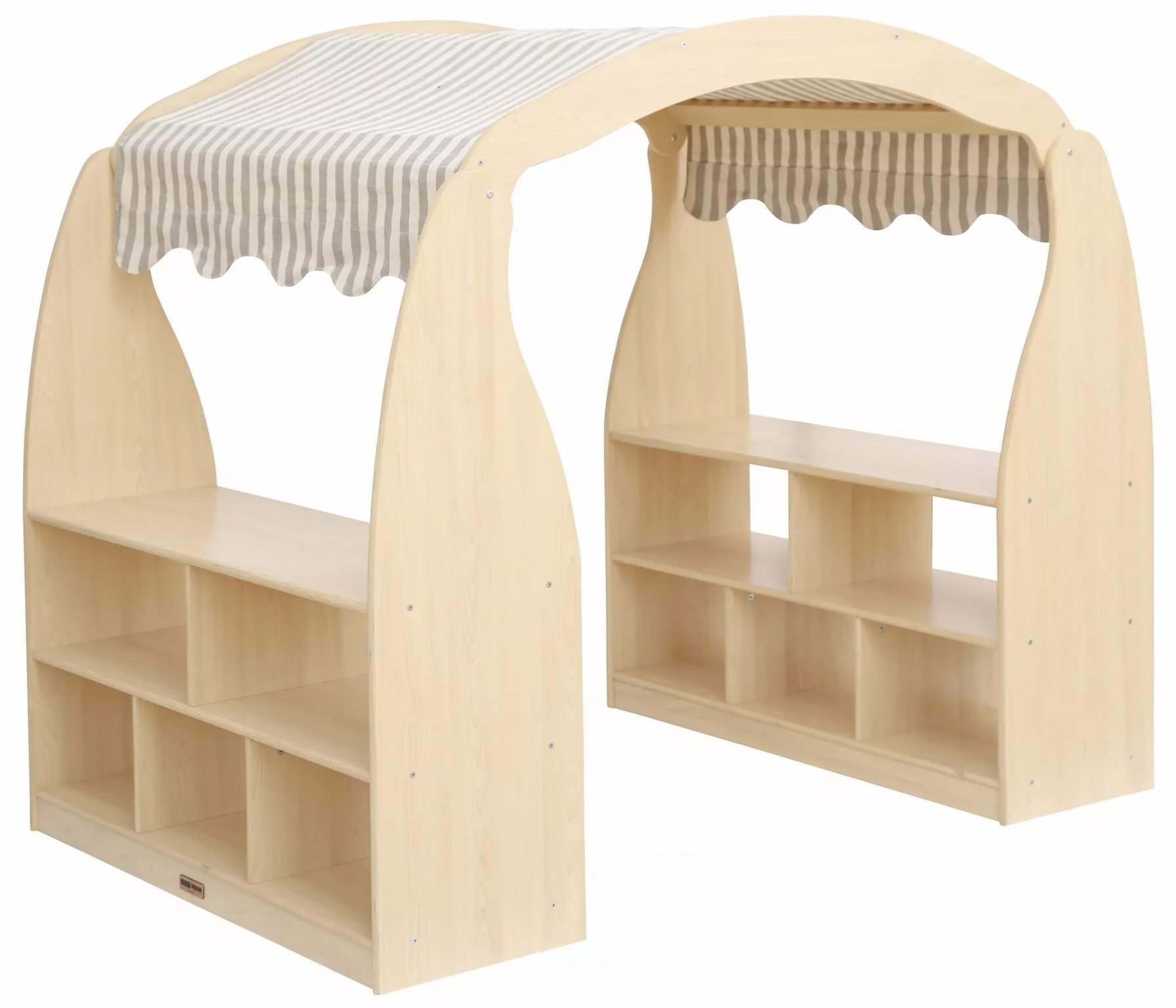 Cette maison de jeu polyvalente d'intérieur pour enfants sert également de séparateur de pièce et de système de rangement. Elle est équipée d'un toit en toile robuste et de 10 compartiments de rangement pour les jouets, les livres ou les accessoires pour le magasin ou le supermarché.