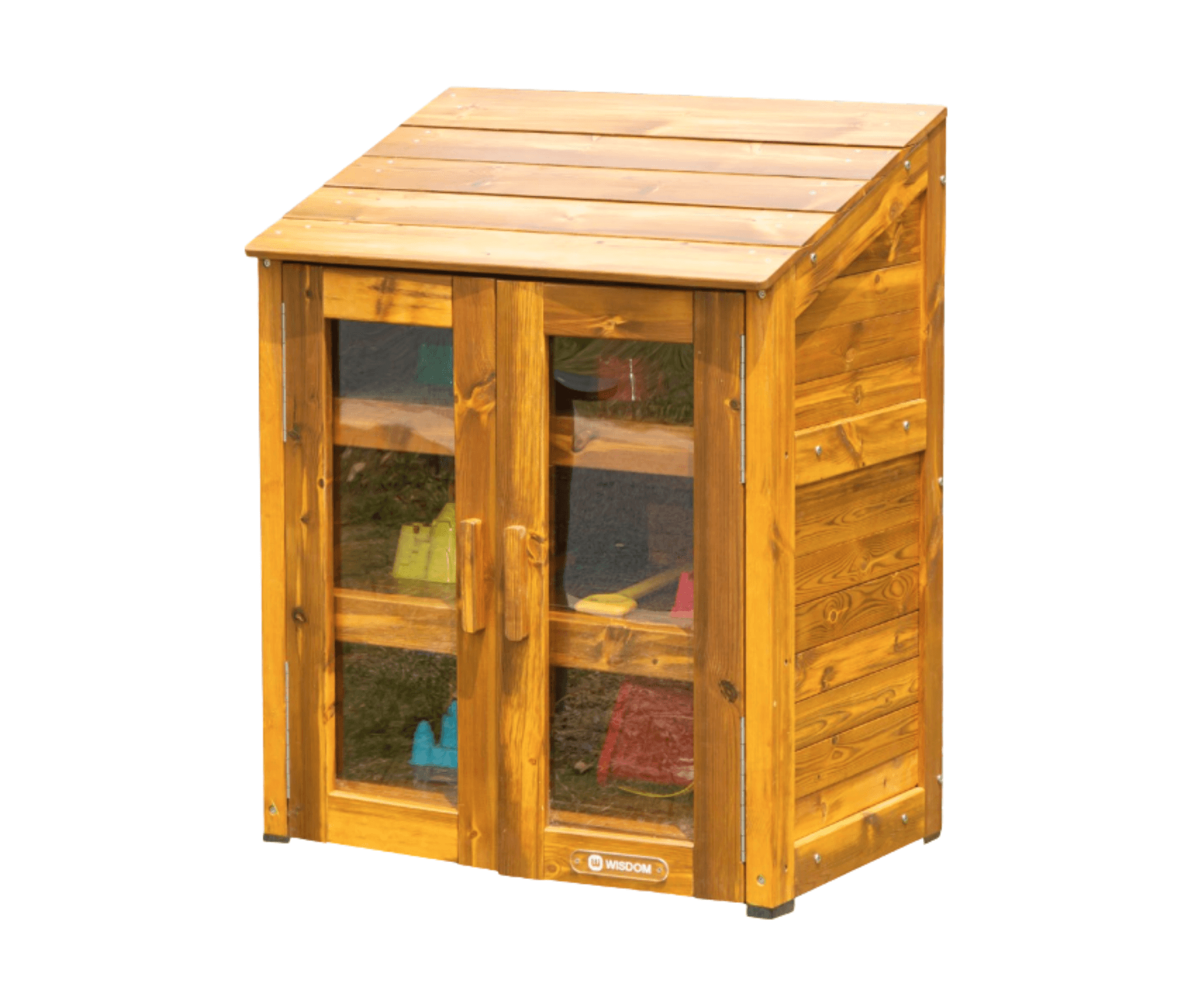 Fabriquée en bois de pin imprégné sous pression, cette armoire est spécialement traitée avec une imprégnation à l’huile de bois et à la cire. Ce traitement haut de gamme protège le bois contre l’humidité et les agressions extérieures, garantissant une longue durée de vie même en usage intensif. Avec ses dimensions compactes (H 101 x L 80 x P 50 cm), elle s’intègre parfaitement dans les cours de récréation, jardins pédagogiques et espaces extérieurs des structures d’accueil de jeunes enfants.