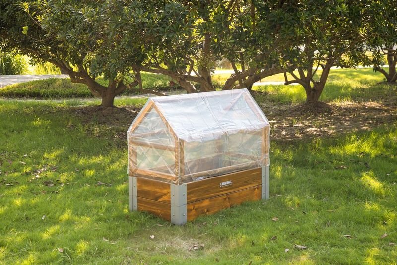 Son toit en polyéthylène (PE) offre une excellente transparence et protège efficacement les plantations contre les intempéries, tout en garantissant un environnement propice à la croissance des végétaux. Pour un entretien facilité et une organisation impeccable, un insert anti-racines en PVC empêche la propagation incontrôlée des racines.