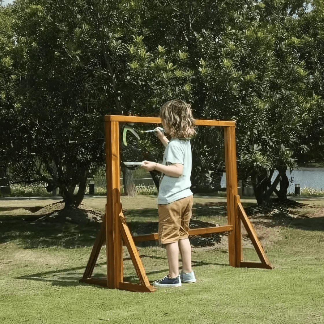 Sa surface en polycarbonate transparent résiste aux intempéries et se nettoie facilement pour une utilisation quotidienne, même en extérieur. La structure en pin traité en autoclave offre robustesse et longévité, assurant un usage sécurisé et durable. Grâce à son design double face, plusieurs enfants peuvent l’utiliser simultanément, favorisant ainsi le jeu collectif et les interactions sociales.
