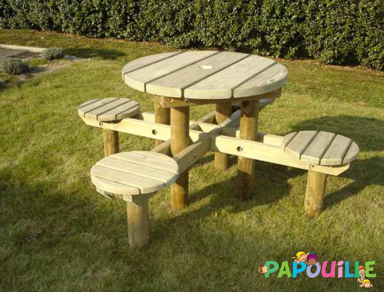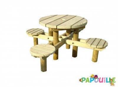 Table d'extérieur ronde avec banc ourson