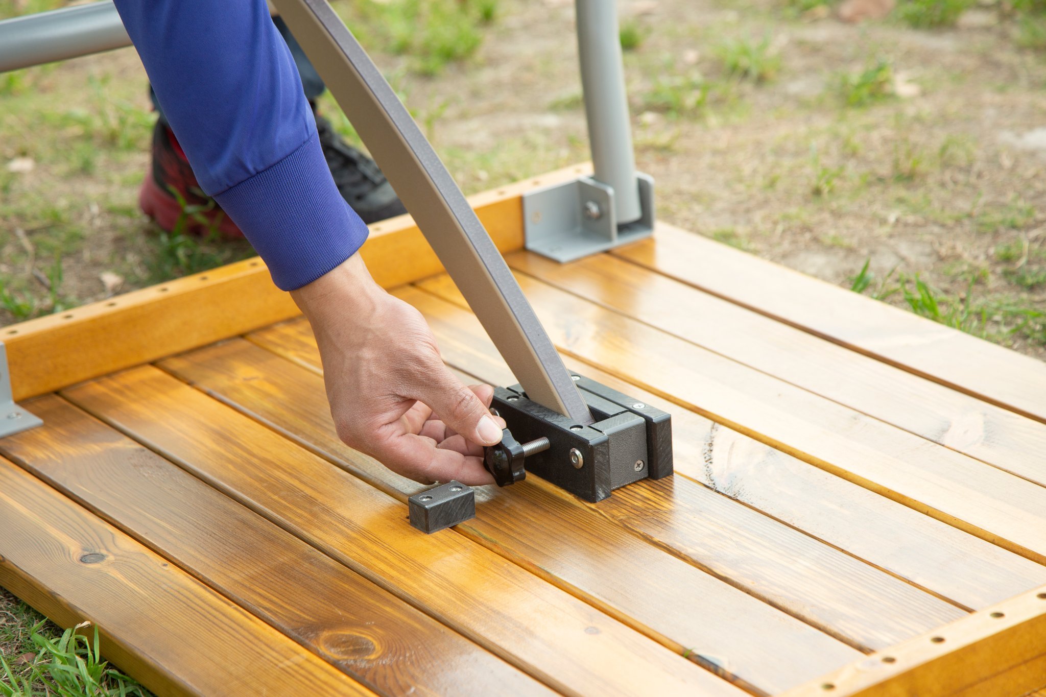 Sa conception robuste associe un bois de pin traité sous pression pour résister à l’humidité, et une structure en aluminium légère mais stable, garantissant une utilisation même par temps pluvieux ou en plein soleil. Ce choix de matériaux en fait un banc durable, sécurisé et fiable, parfaitement adapté aux exigences des structures d’accueil de jeunes enfants.