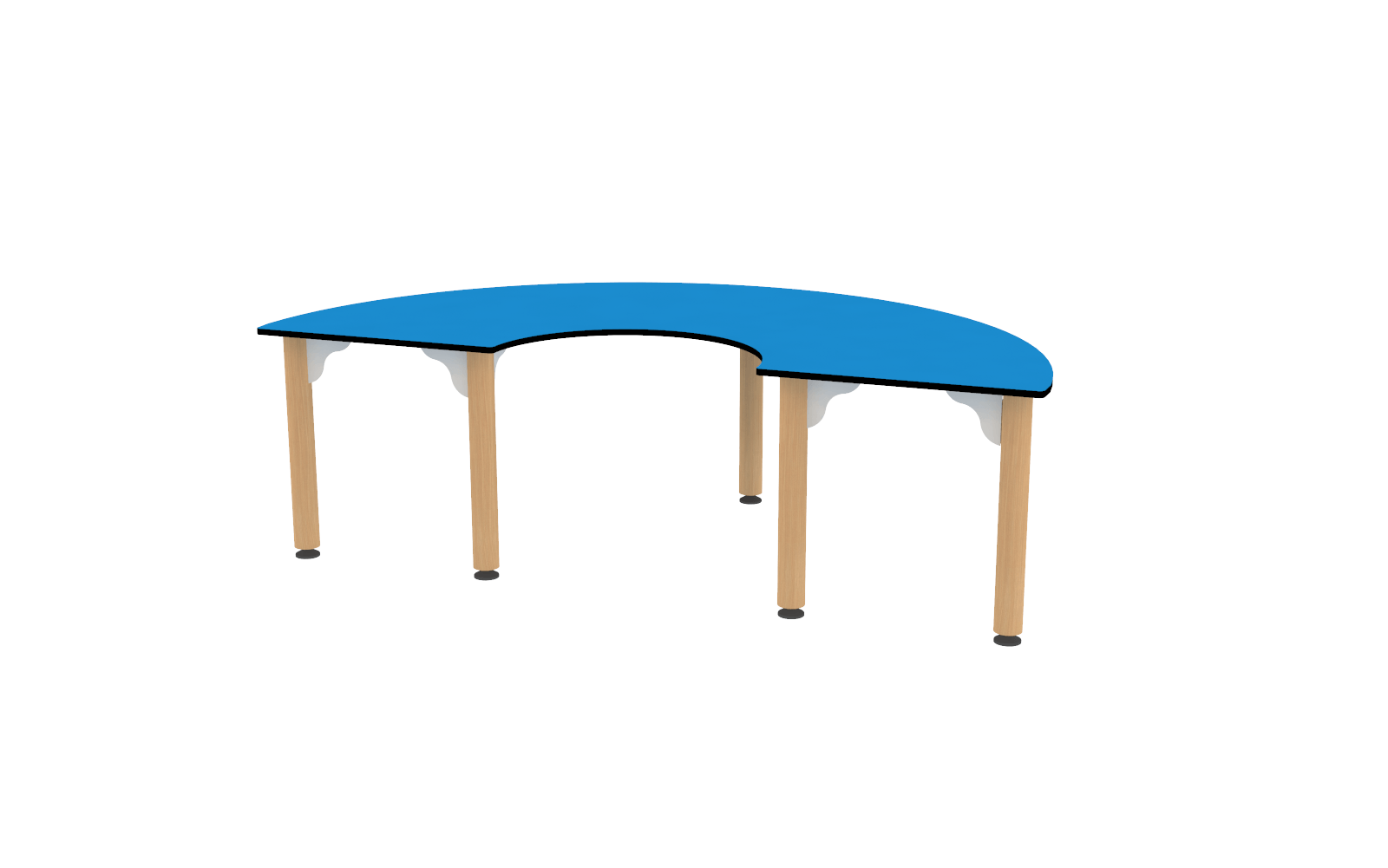 Avec une capacité d’accueil pouvant aller jusqu’à 6 chaises, elle est idéale pour les activités de groupe, les repas ou les ateliers pédagogiques. Son design demi-lune permet une modularité optimale, pouvant être associée à d’autres tables pour former des configurations variées et répondre aux besoins de chaque espace.