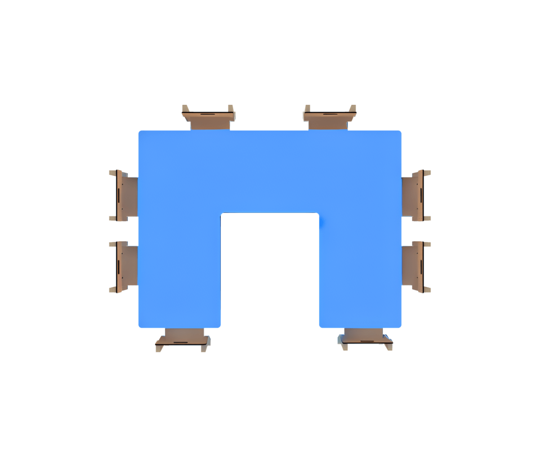 Sa forme en U favorise l’interaction entre les enfants et facilite le travail des professionnels de la petite enfance, notamment lors des activités collectives. Elle peut accueillir jusqu'à 8 chaises, offrant ainsi un agencement optimal pour les repas, les jeux ou les temps d’apprentissage.