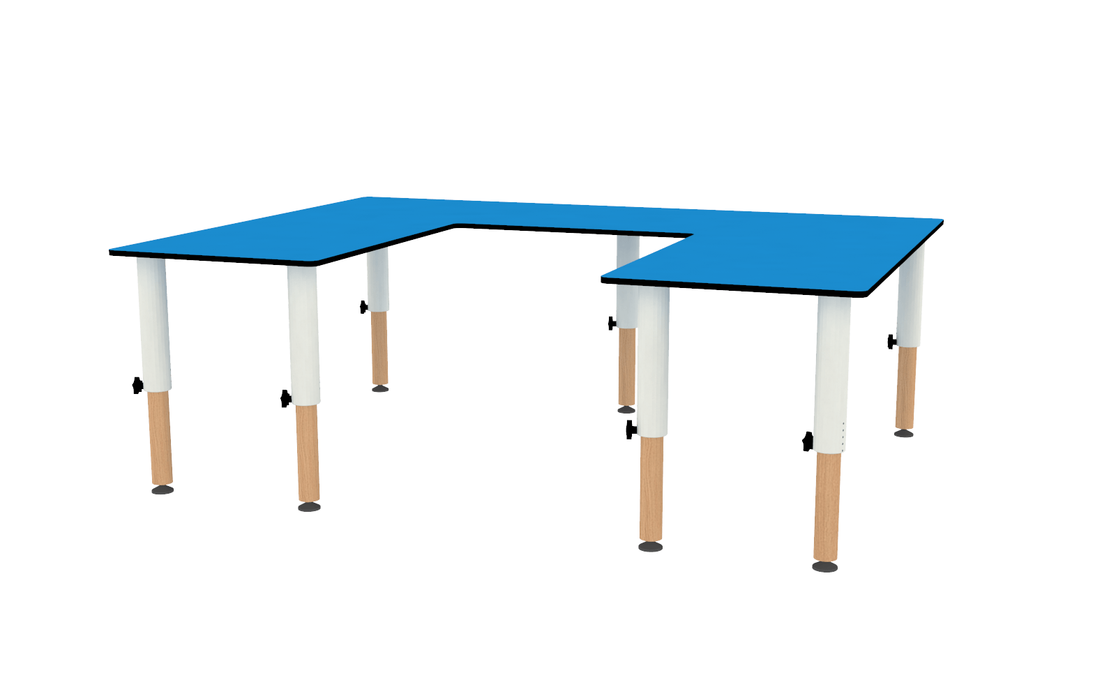 Les pieds en hêtre massif (diamètre 50 mm) sont équipés de vérins réglables et d’une molette de réglage, permettant d’adapter la hauteur en fonction des besoins. Le tube en acier laqué et époxy renforce la stabilité de l’ensemble, assurant une sécurité maximale aux jeunes enfants. Conforme à la norme NF EN 1729-1, cette table est spécialement pensée pour les espaces éducatifs et l’apprentissage en toute sérénité.