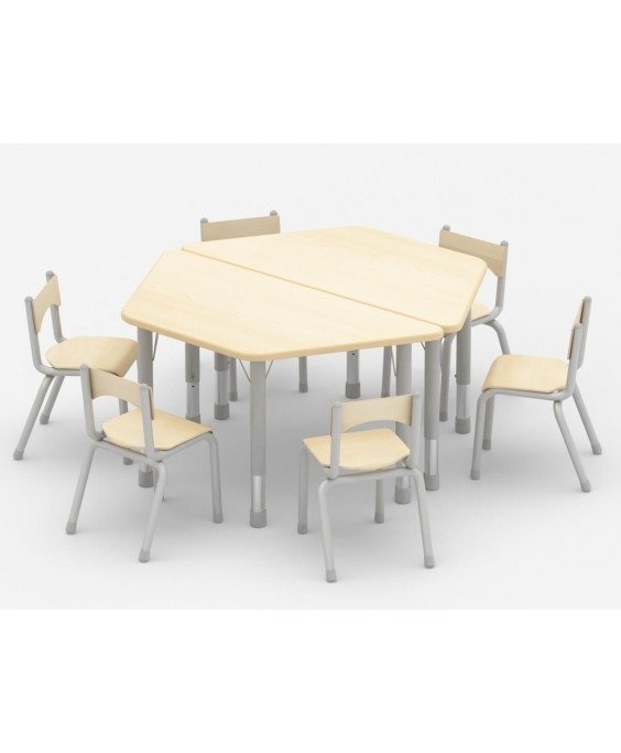 Fabriquée avec des matériaux de haute qualité, cette table trapèze est à la fois robuste et durable, assurant une utilisation à long terme dans les environnements dynamiques des crèches et des écoles maternelles. La surface lisse et facile à nettoyer garantit un entretien simple, tandis que les coins arrondis assurent la sécurité des tout-petits lors de leurs activités.