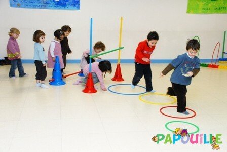 Ensemble de motricité permettant de réaliser un mini-parcours composé d'enjambements et passages dans les cerceaux. pour vos Crèches et écoles même à la MAISON !