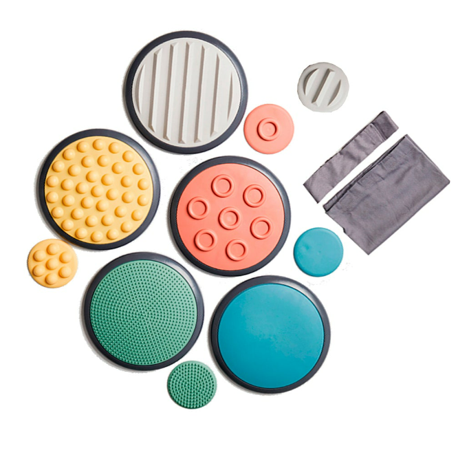 Ce nouveau concept des disques tactiles pour enfant sollicite le sens du toucher des enfants, que ce soit au niveau des mains et des pieds.