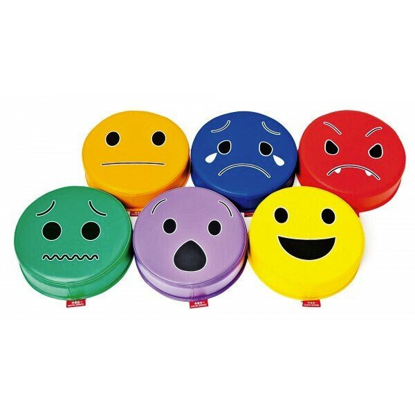 Le lot de 6 coussins émotions spécial crèche peut être utilisés pour s'asseoir en groupe et pour apprendre à reconnaître, exprimer, nommer et classer les émotions.