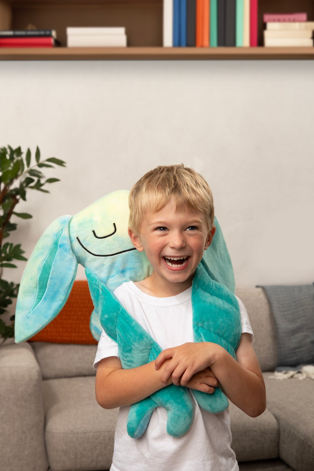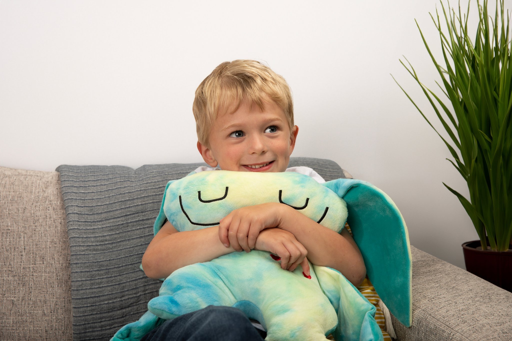 Dotée d’un poids équilibré (0,8 à 1 kg) réparti uniformément dans le corps, les bras et les jambes, la peluche sensorielle Bumpas procure une sensation de câlin réaliste et réconfortant. Elle stimule les sens grâce à sa texture ultra-douce et ses détails ludiques : des bras en forme de cœur, un visage apaisé aux yeux fermés d’un côté, et un regard protecteur aux yeux grands ouverts de l’autre.