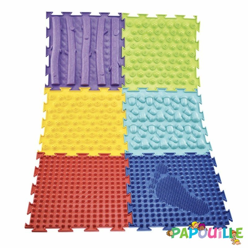 Ce lot de 6 dalles sensorielles a été conçu pour éveiller les sens des enfants à partir de 3 ans. Idéal pour créer un chemin sensoriel ou un tapis tactile, chaque dalle offre une stimulation différente, grâce à des textures uniques : picots plus ou moins souples, motifs en relief ou surfaces texturées, chaque dalle apporte une expérience sensorielle enrichissante.