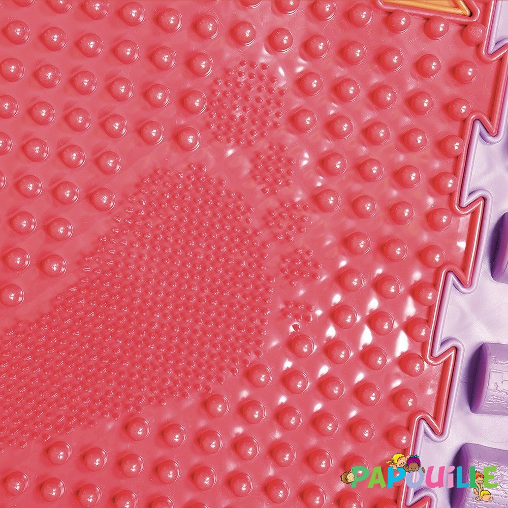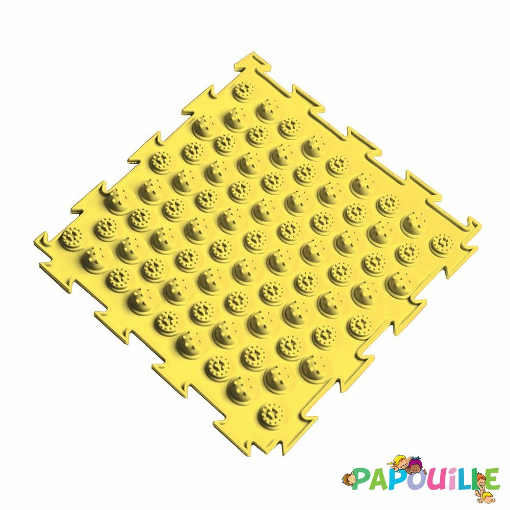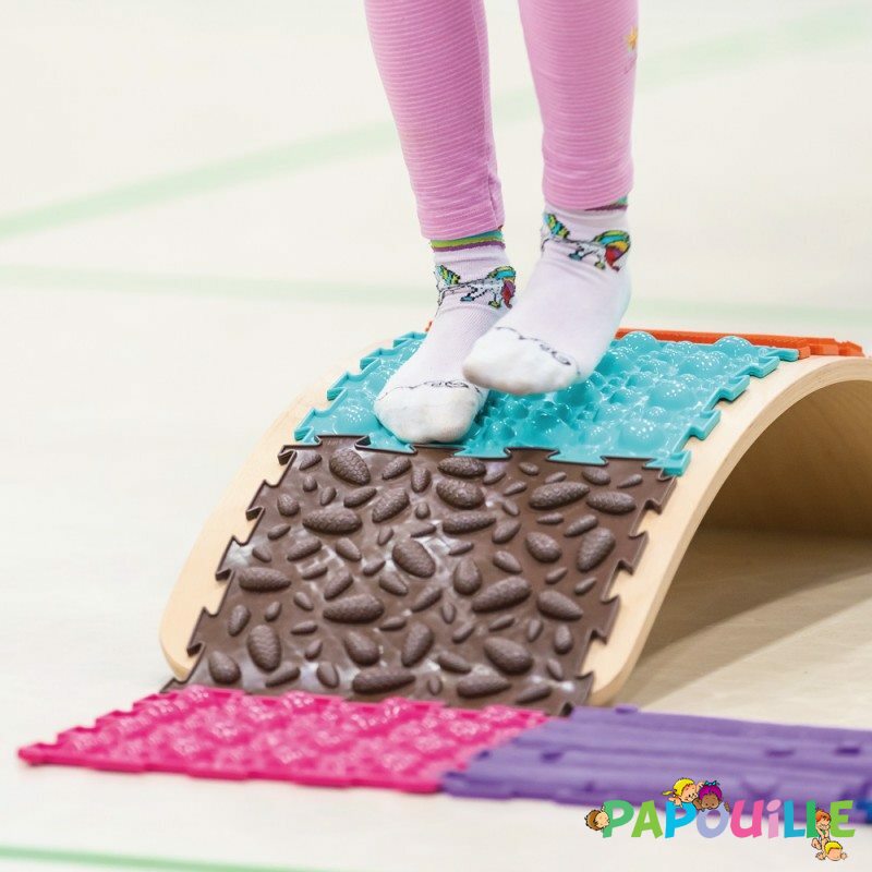 Fabriquées en plastique souple, ces plaques sont à la fois résistantes, lavables et sécurisées pour un usage collectif. Les enfants peuvent marcher dessus pieds nus, s’asseoir, ou les explorer avec les mains. Elles favorisent la motricité globale, la perception tactile et la concentration, tout en développant la proprioception.
