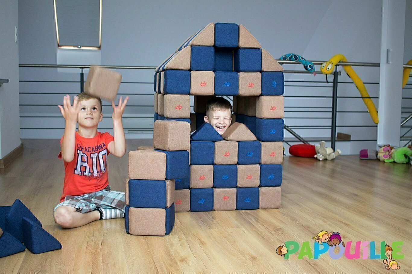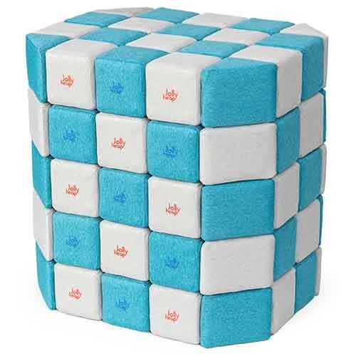 Cubes de constructions basic magnétiques de psychomotricité tissu 100 pièces turquoise et blanc