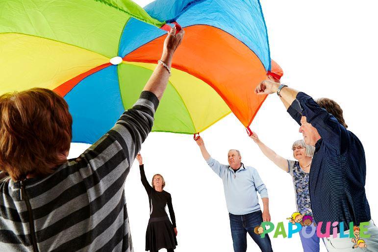 Parachute : intérieur et extérieur pour jouer à plusieurs en structure d'accueil de jeune enfant ( crèche, micro-crèche, multi-accueil, centre de loisir, école maternelle )