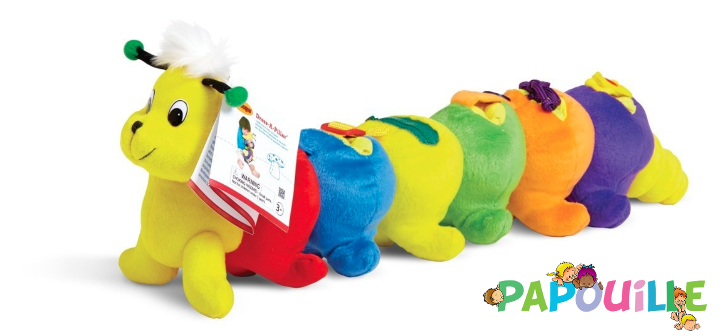 Grâce à cette belle chenille, l'enfant s'entraîne à boutonner, zipper, lacer... tout en s'amusant !