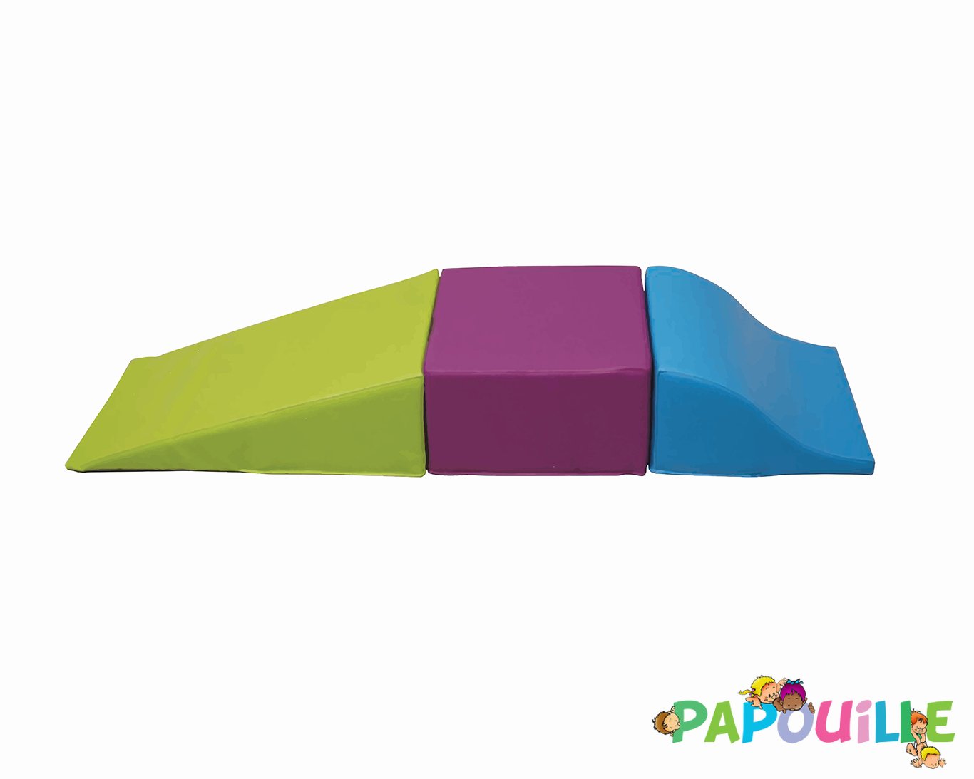 Grâce à sa mousse de densité 30 kg/m³, cet ensemble offre un excellent compromis entre fermeté et confort. Les jeunes enfants peuvent grimper, ramper, enjamber ou se laisser glisser en toute confiance, favorisant le développement de la motricité globale, de l’équilibre et de la coordination.