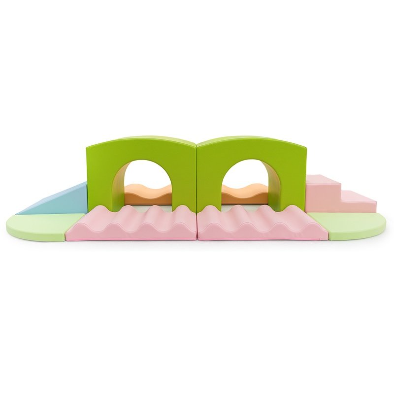 Avec un poids de 18 kg, ce parcours comprend 12 pièces modulaires qui s'assemblent pour créer un espace de jeu interactif et stimulant. Ses dimensions généreuses de 240 cm de longueur, 144 cm de largeur, et 54 cm de hauteur offrent un vaste terrain pour que les enfants puissent grimper, ramper et sauter en toute sécurité.