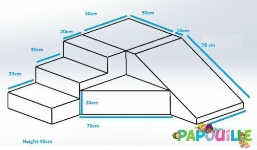 Chaque module est fabriqué en mousse polyéthylène de haute qualité, à la fois ferme et légère, assurant un excellent maintien tout en limitant les risques de blessures. Le revêtement en toile PVC sans phtalates est facile d’entretien. Grâce à ses propriétés ignifuges (Non Feu M2), ce parcours respecte les exigences de sécurité pour les jeunes enfants.