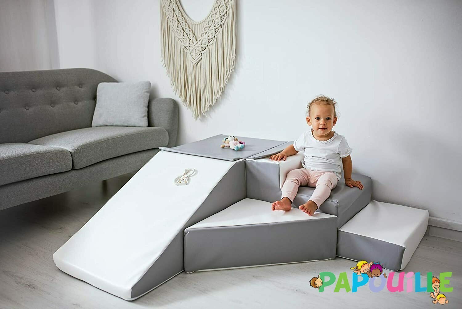 Chaque module est fabriqué en mousse polyéthylène de haute qualité, à la fois ferme et légère, assurant un excellent maintien tout en limitant les risques de blessures. Le revêtement en toile PVC sans phtalates est facile d’entretien. Grâce à ses propriétés ignifuges (Non Feu M2), ce parcours respecte les exigences de sécurité pour les jeunes enfants.
