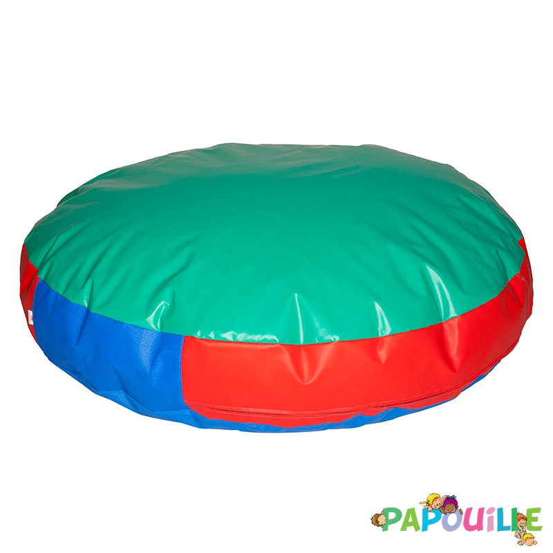 - un grand pouf rond vert bleu et rouge en mousse de mors ø 140 x 30 cm