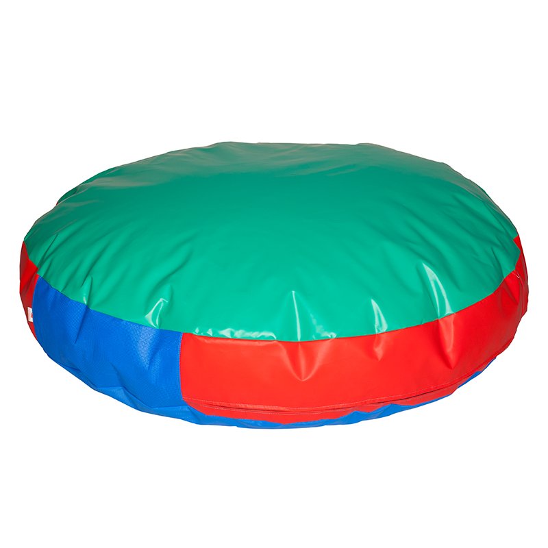 - un grand pouf rond vert bleu et rouge en mousse de mors ø 140 x 30 cm