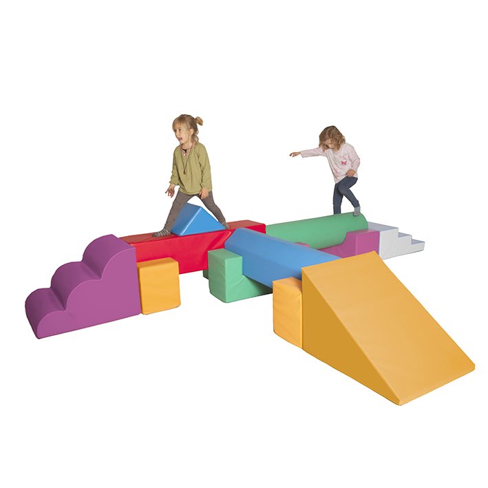 Sur ce parcours de motricité en forme de T, les enfants auront un choix à faire. Cela leur permettra de travailler leur capacité cognitive tout en travaillant leur équilibre et leur capacité à résoudre un problème grâce aux a-obstacles.